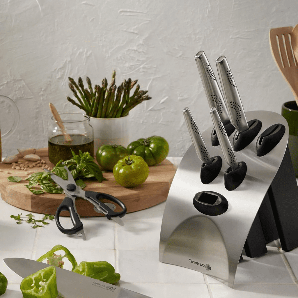 While each knife on its own will significantly elevate your cooking experience, a knife block set will equip you with the ability to easily access the correct knife for every task and keep your blades well protected.