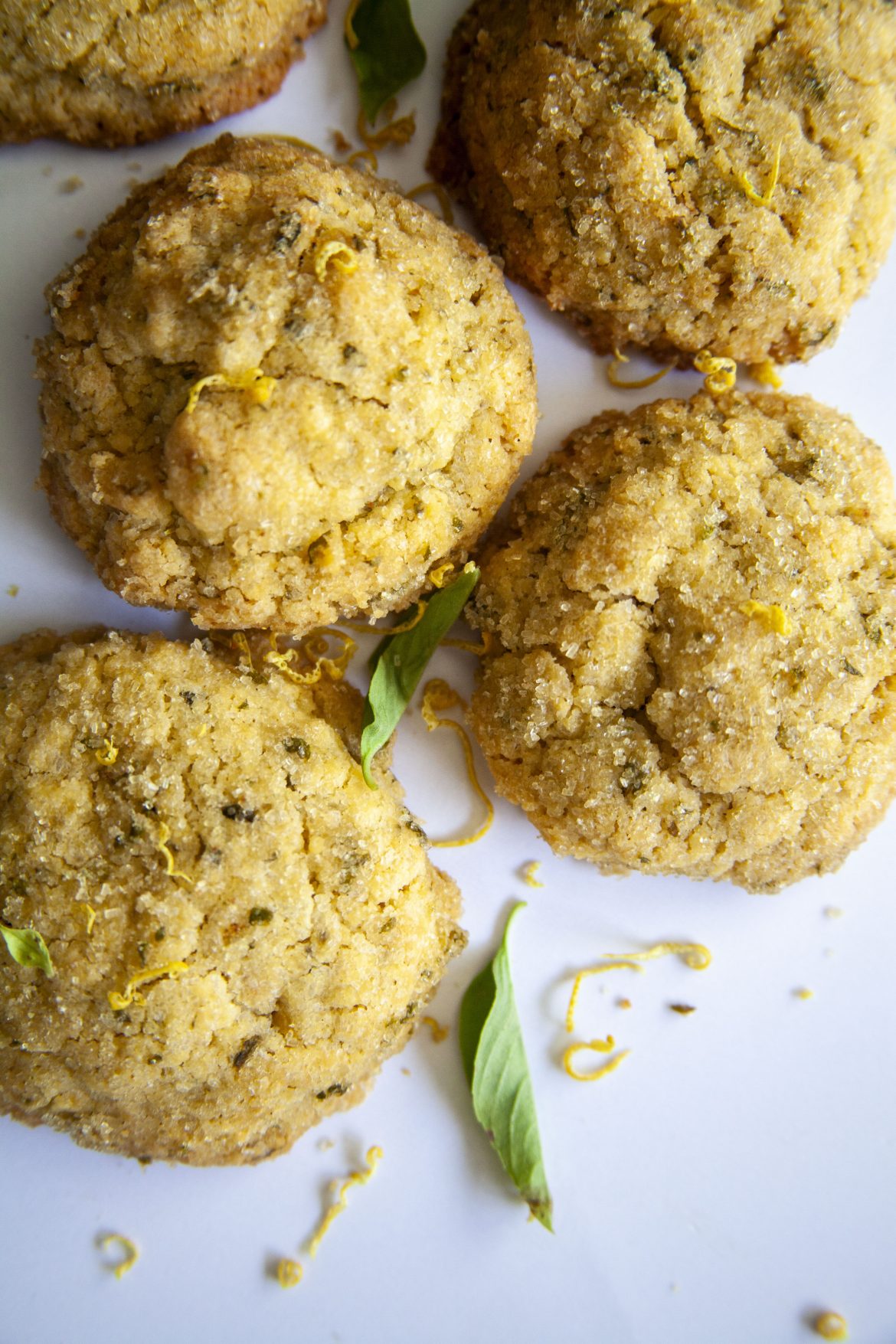 Make the basil sugar for rolling and gently roll the cookie dough lightly in the sugar.