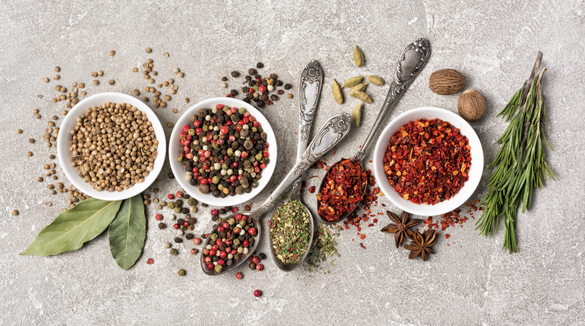 Herbs may be added near the end of cooking for more distinct flavours, or at the beginning for more blended flavours. Ground spices and herbs release their flavours readily so in dishes like stews, it’s best to add these near the end of the cooking time to minimize the “cooking off” of flavours.