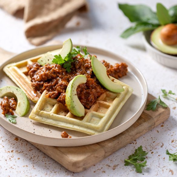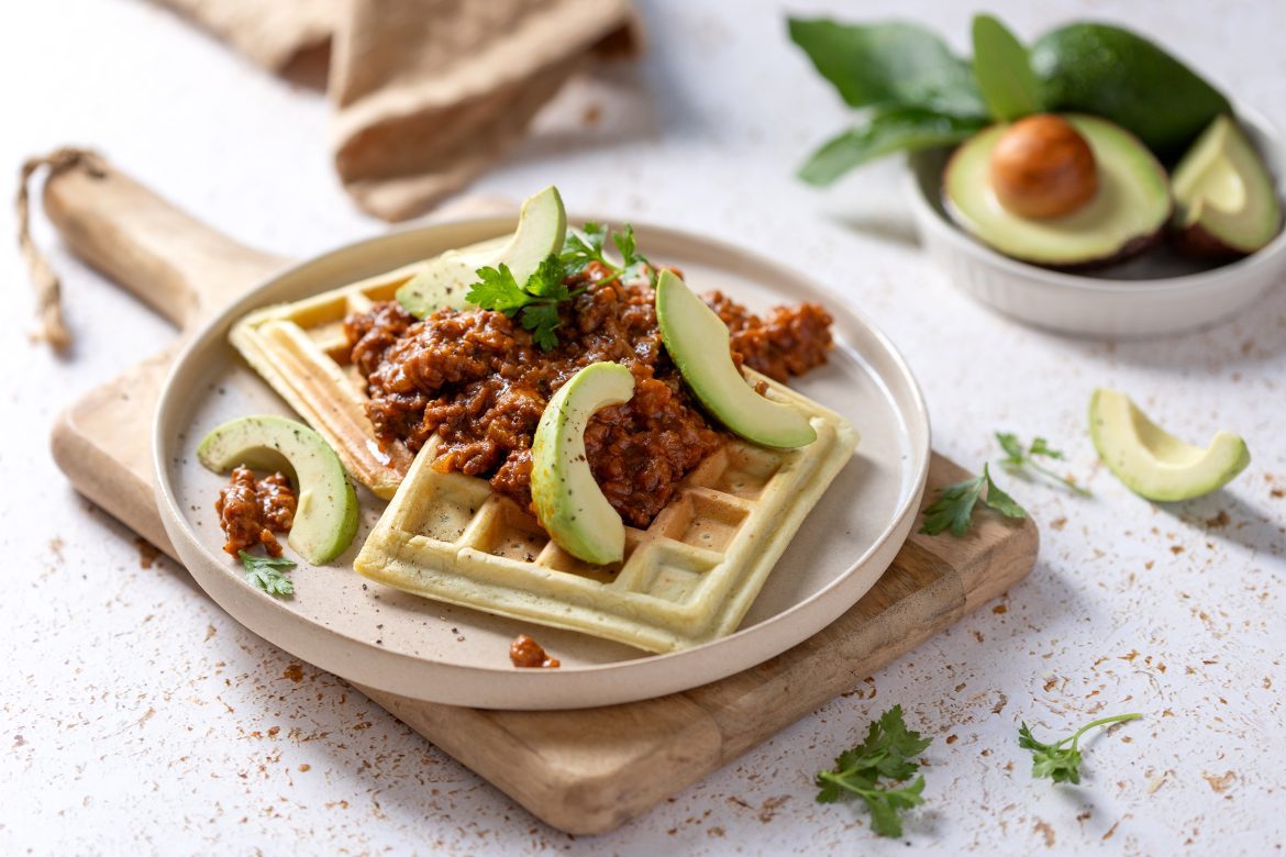 7.Serve the waffles with the mince, remaining avocado and extra parsley.