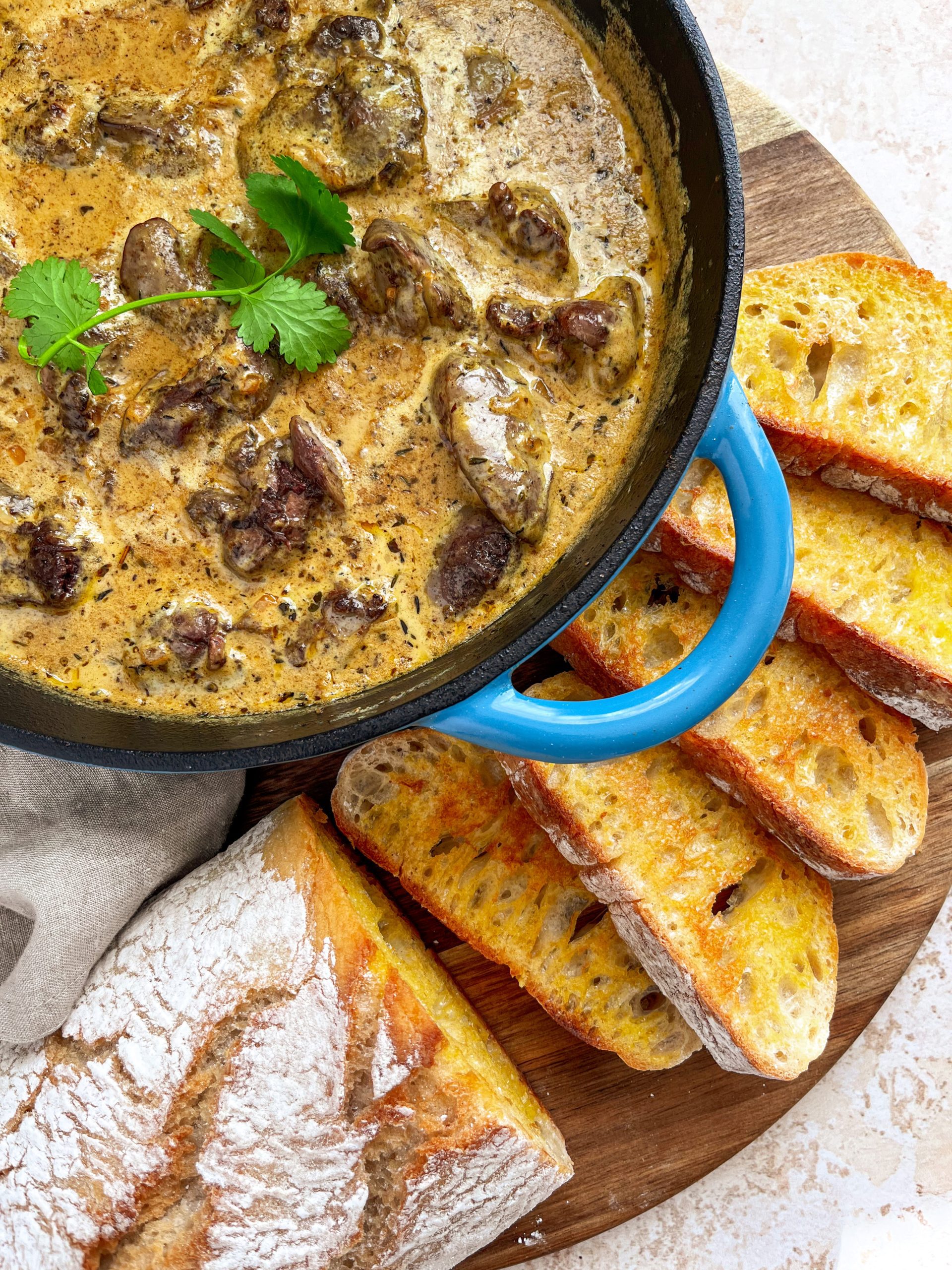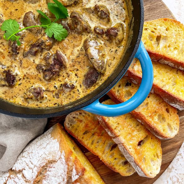 8.Serve the chicken livers hot as an appetiser or a main dish. They can be enjoyed on their own or with crusty bread or rice.