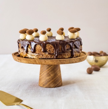 10. Decorate with marzipan balls and chocolate-coated almonds. Dust with cocoa powder.