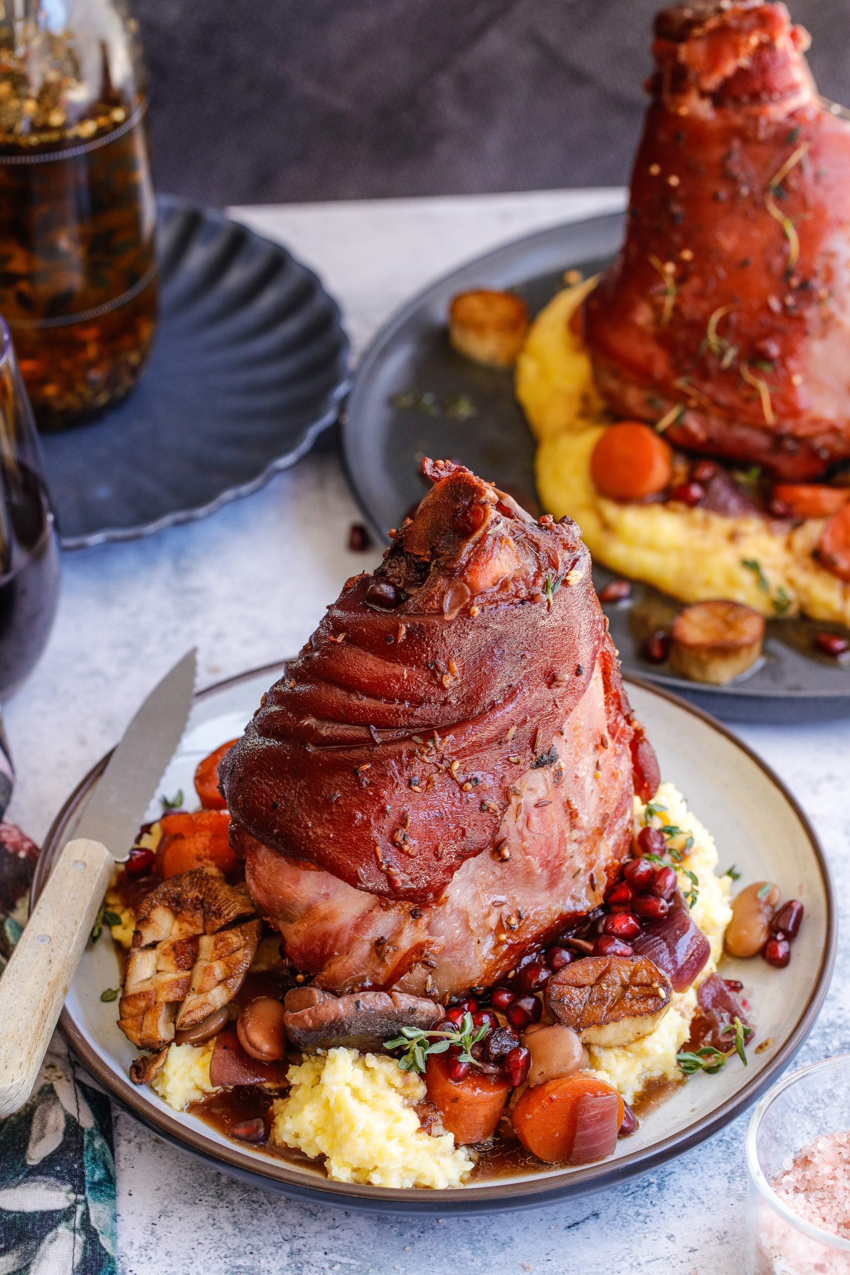 This recipe combines the indulgence of deep frying with the sophistication of a wine gravy. Deep frying provides an unmatched crispiness to the Eisbein. For the best crackling, ensure the pork skin is thoroughly dried in the fridge overnight.