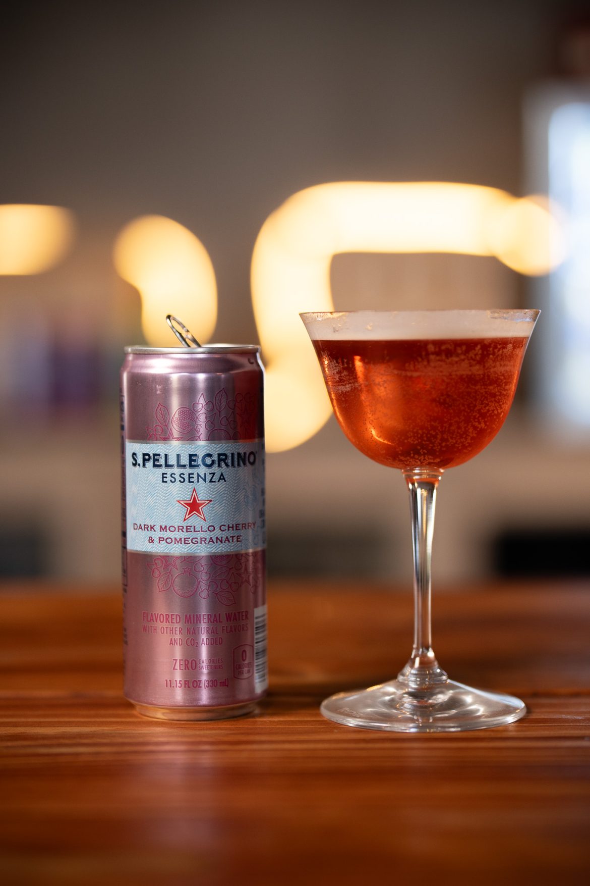 - topped with Sanpellegrino Essenza Dark Morello Cherry and Pomegranate