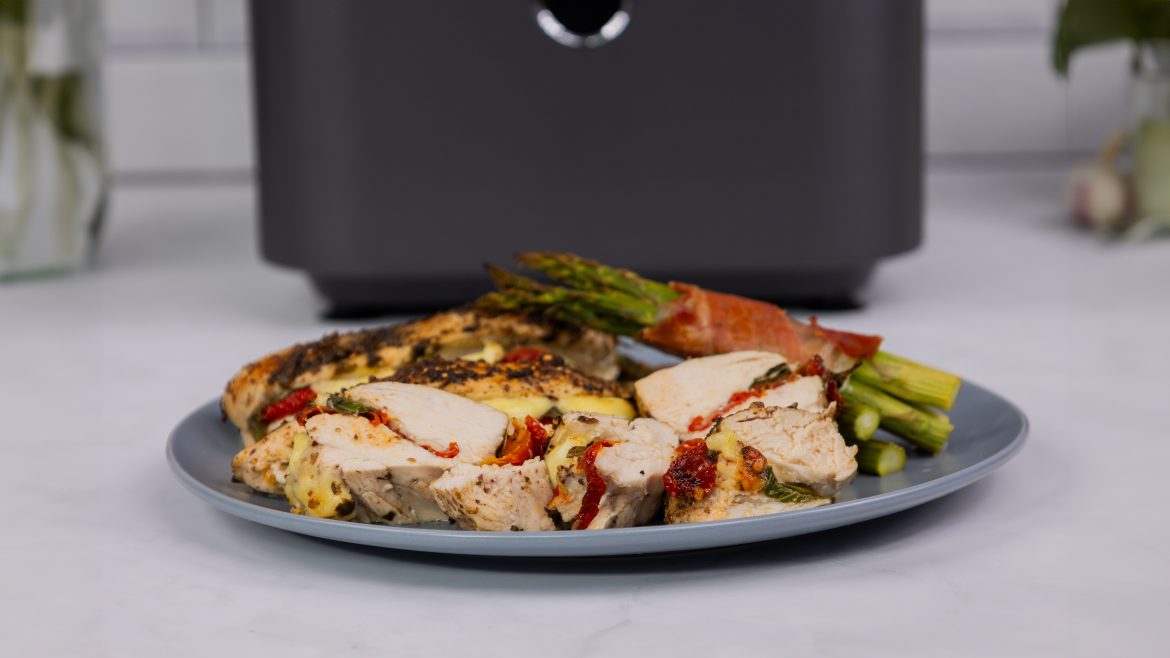 - Place the stuffed fillets in your air fryer or oven. Using the Chicken setting, cook for 20 minutes or until fully cooked and juicy.