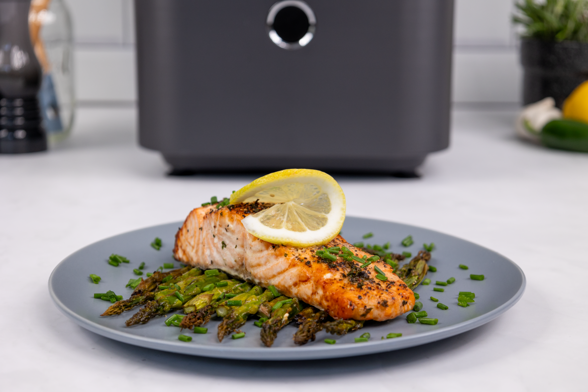 Add a few asparagus spears to the air fryer basket, they cook beautifully alongside the salmon for a quick, healthy side.