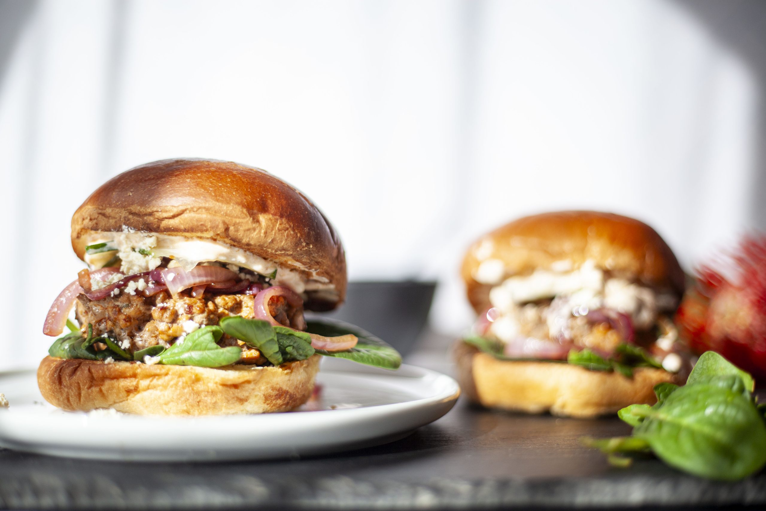 5. Assemble the burger on soft brioche or flatbread. Top your lamb patty with rose harissa tzatziki, baby spinach or rocket, pickled red onions or shaved cucumber ribbons, and feta or halloumi. Finish with pomegranate arils for a sweet crunch.