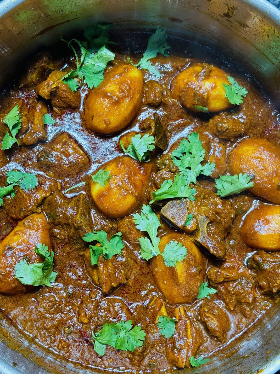 4. Top with fresh coriander and serve with rice, roti, or naan bread, and enjoy!