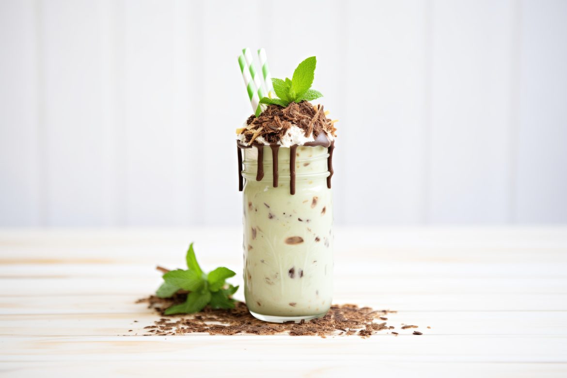 - Pour the milkshake into 2 tall glasses.