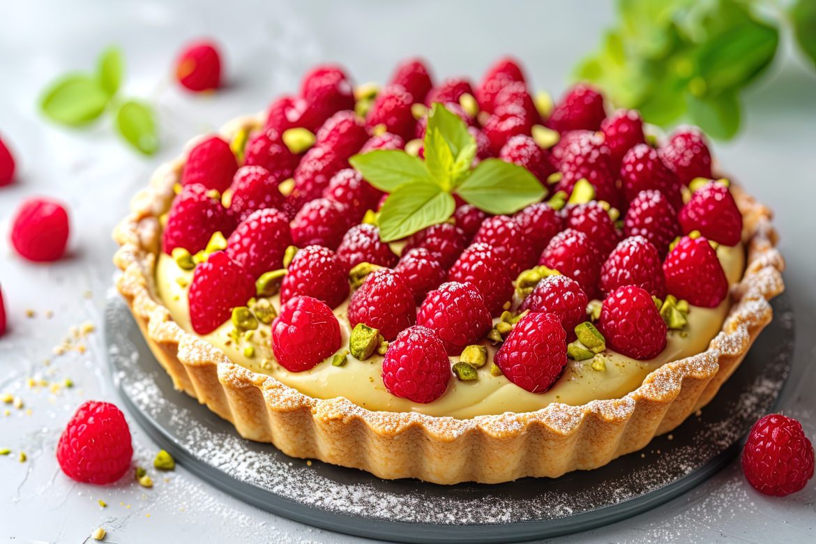 - Pour in the filling, smooth the top & garnish with raspberries, pistachios & a drizzle of Nestlé Milkybar Flavoured Dessert Topping.