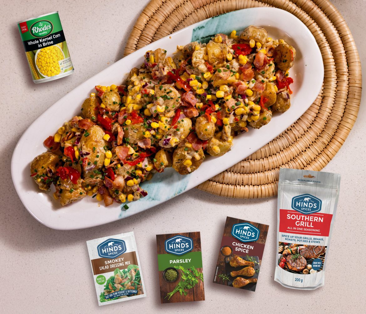 - Lay the cooked potato on a baking tray and season with the Hinds Spices Southern Grill spice and drizzle with a tablespoon of olive oil.