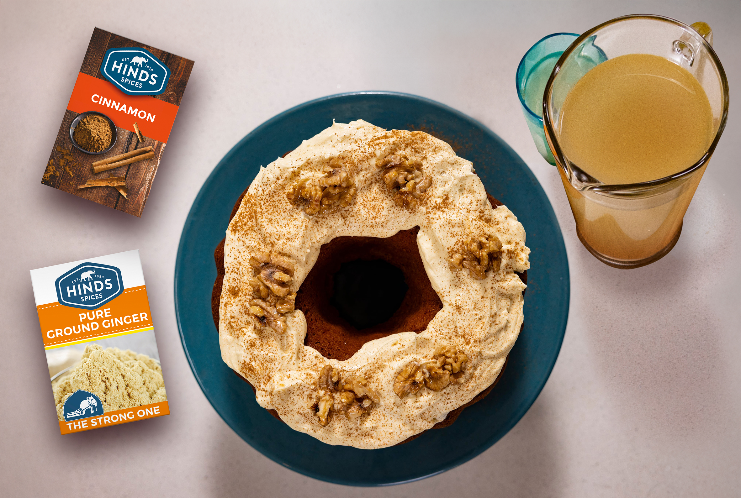- Dust with Hinds Spices Cinnamon and garnish with walnuts.