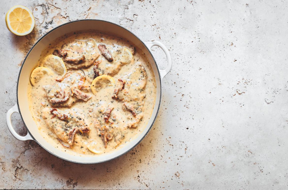 - Add lemon slices and serve immediately with pan-grilled broccolini, mashed potatoes, pasta, polenta or steamed green beans. Crusty bread is especially good.