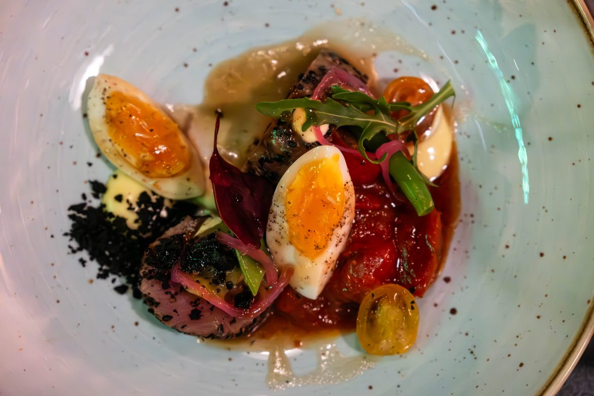 The third course of the evening saw guests enjoying Chef Hill’s tuna nicoise, tamatie smoor, green beans, eggs and dried black olives. Next, attendees were treated to a dish of wild mushrooms on a bed of cauliflower purée with truffle dressing and pickled onions.