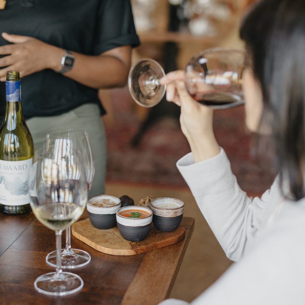 The experience begins with a velvety white bean and truffle soup served alongside a garden mushroom toastie, beautifully complemented by the rich, layered Creative Block 5 2021. Next, a charred tomato soup with a parmesan toastie is paired with the vibrant Seaward Chardonnay 2024. The tasting concludes with a delicate pumpkin velouté, topped with goat’s cheese foam and pumpkin spice, matched with the bold and expressive 21 Gables Pinotage 2020. As a final indulgence, guests are treated to a chocolate brownie, the perfect sweet note to end a cosy winter tasting.