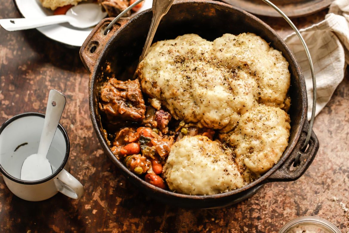 - As the stew thickens, drop spoonfuls of dumpling batter into the top. Ensure enough space between dumplings for expansion. Cover and let it simmer for 10 more minutes until the dumplings rise and cook through.