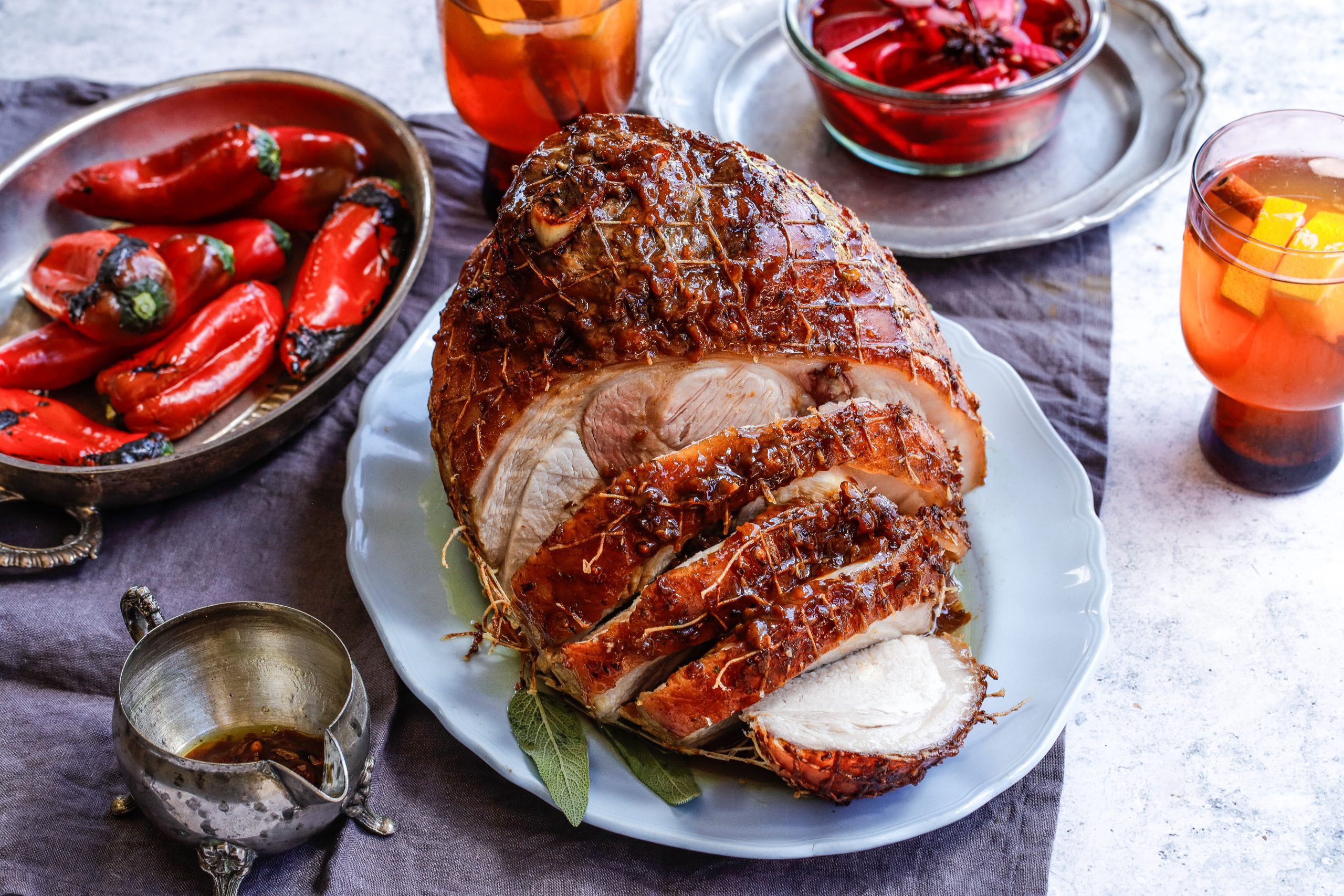 - Halfway through roasting, brush the pork with tomato jam to help create a caramelised glaze.