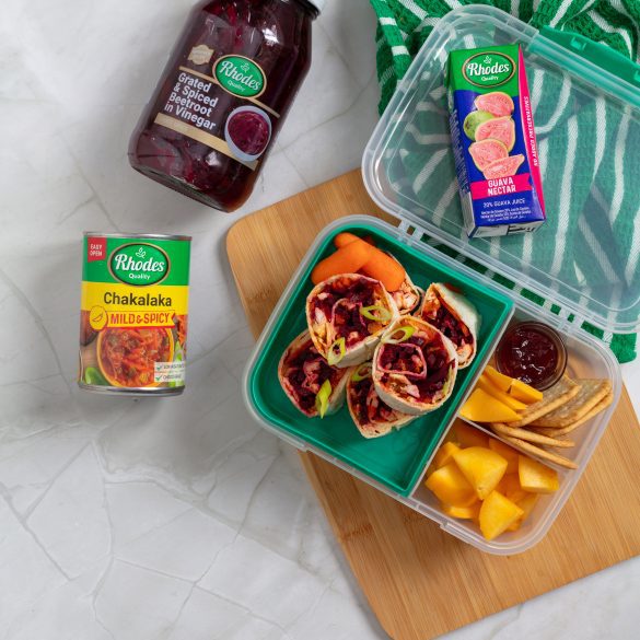 Beetroot, Chicken and Chakalaka Pinwheels