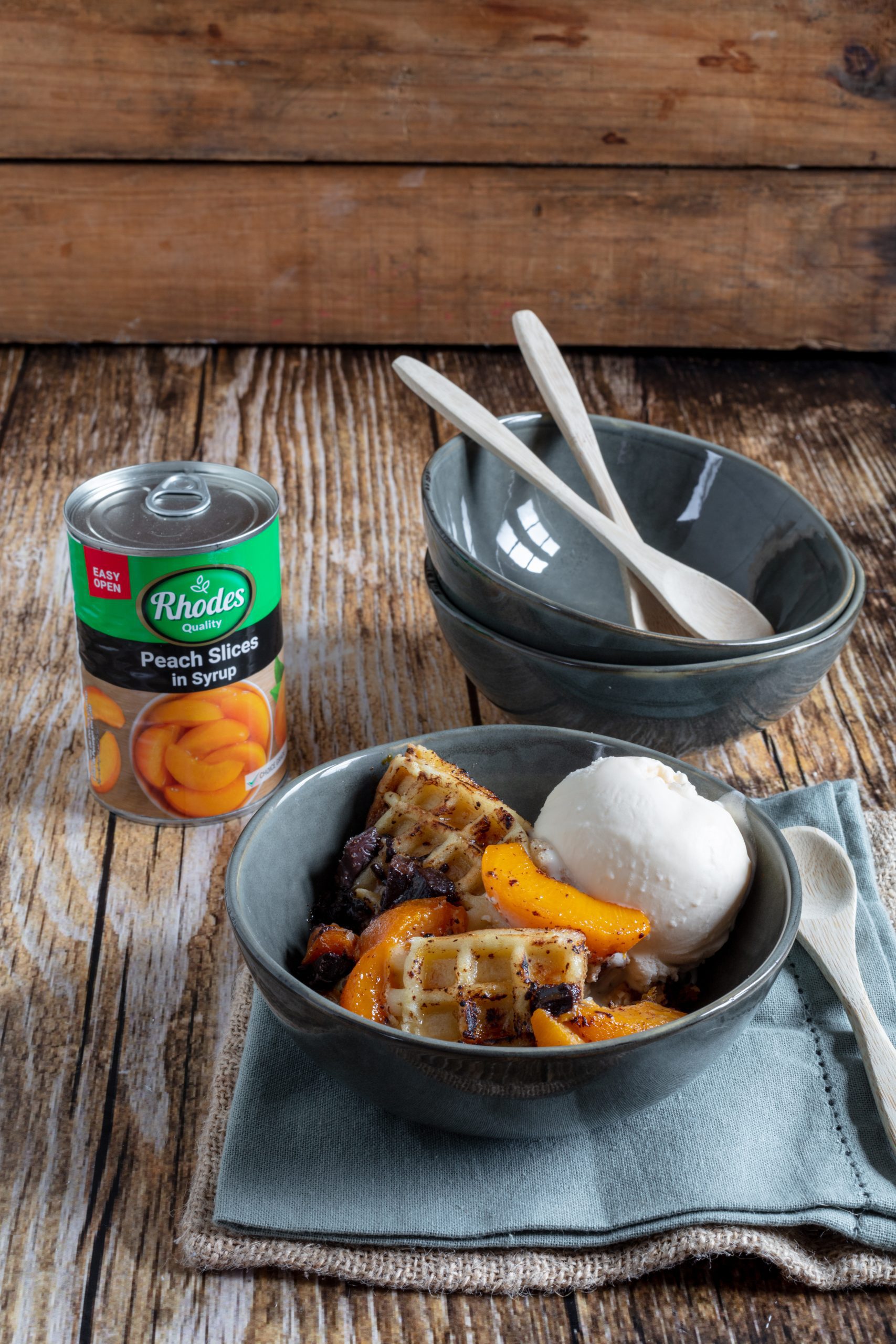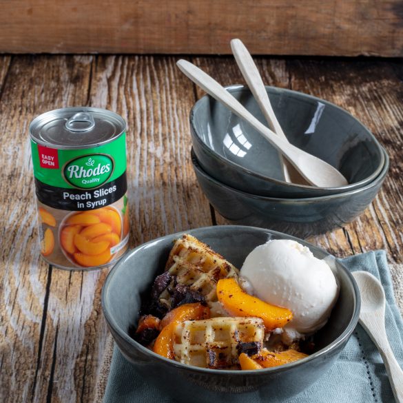 Place the Rhodes Quality Peach Slices in a layer over the waffles.