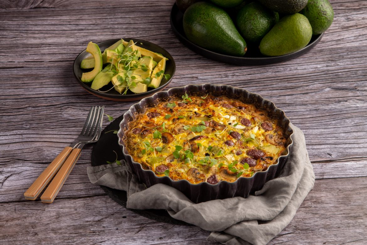 - To serve cut into wedges and serve with avocado slices, a rocket leaf salad and crusty bread.
