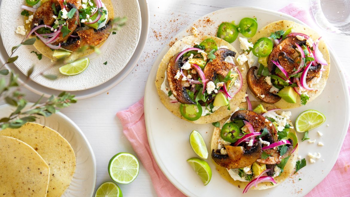 Top with mushrooms, quick pickled onions, avocado, jalapeño slices and coriander.