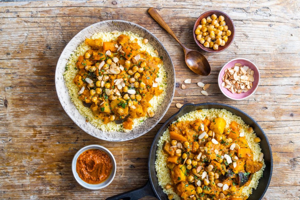 - Dish the tagine onto a bed of couscous, top with the flaked almonds and a squeeze of lemon juice.